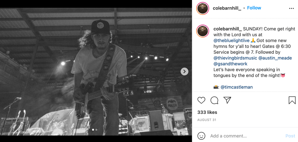 Cole is so new to the scene, he doesn’t even have a website yet. Utilizing his presence on social media and Spotify is how he is currently announcing his tour dates and current information. In his breakout year he has been able to play with some very notable artists such as Gary Allen in August and is headed out on tour with Pecos & The Rooftops with dates scheduled in Texas, Oklahoma, Alabama, North and South Carolina.