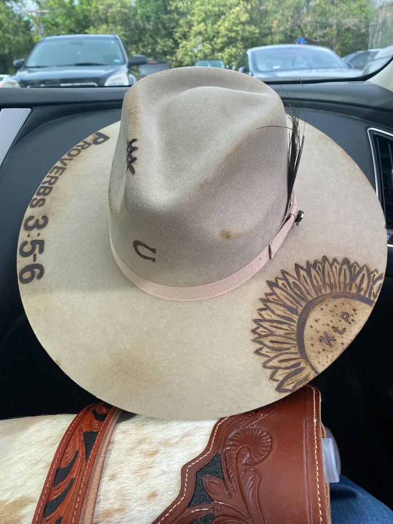 We walked into a little hat shop on the main strip called Gruene Hat Company, Priscilla was wanting a new hat and they had a large selection. There were two guys working in the shop, they looked like wanna-be Midland band members. A guy named Kyler helped us, showing Priscilla all the Charlie 1 Horse hats and helping her find the one that fit right. Priscilla had been wanting to get a hat custom burned as a momento to her late sister. Apparently we had come to the right place because Kyler was pretty good at customizing hats. He recreated Priscilla’s vision and made her a stunning hat. She cried, I teared up, it was a really sweet moment to witness.